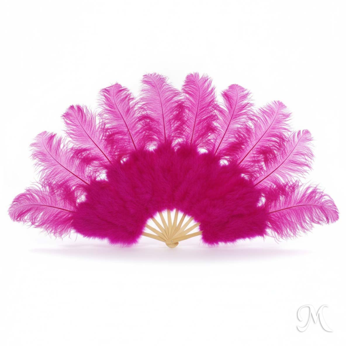 Abanico de Plumas Avestruz Fucsia para Presentaciones y Espectaculo