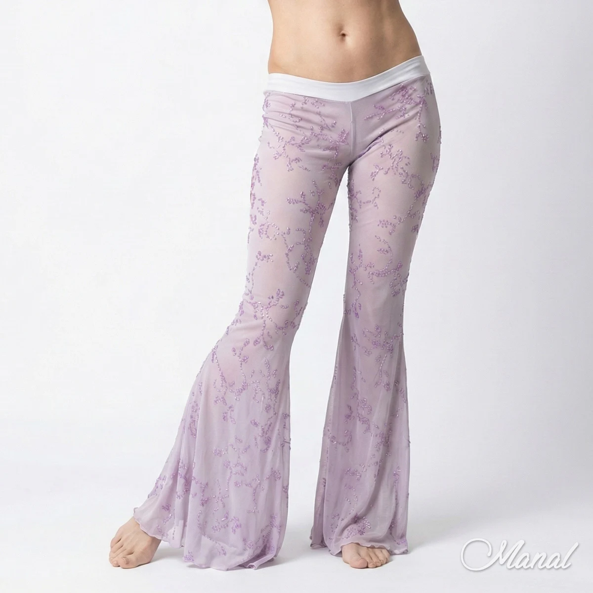 Pantalón Acampanado | Tul con Mostacillas Lila | Talla S